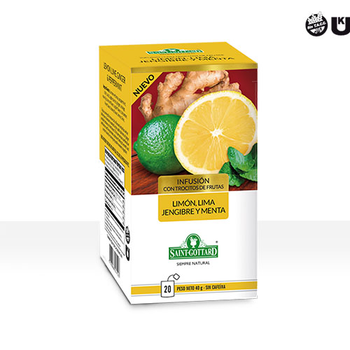 Limón, Lima, Jengibre y Menta Disfrute saboreando esta intensa infusión cítrica donde las sutiles notas picantes del jengibre y la frescura de las hojas de menta marcan sus características distintivas. Esta armoniosa combinación con lima y limón brinda confort y agradable calidez. Ingredientes: Cedrón, menta, ácido cítrico, trocitos de manzana, jengibre, naranja, rosa mosqueta, canela, limón, lima, acido cítrico y…